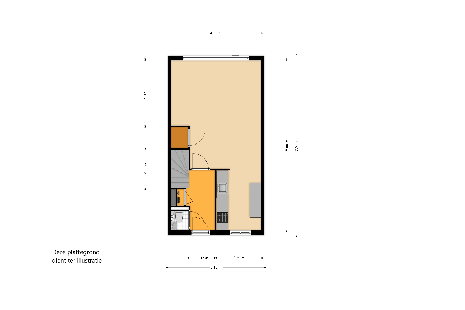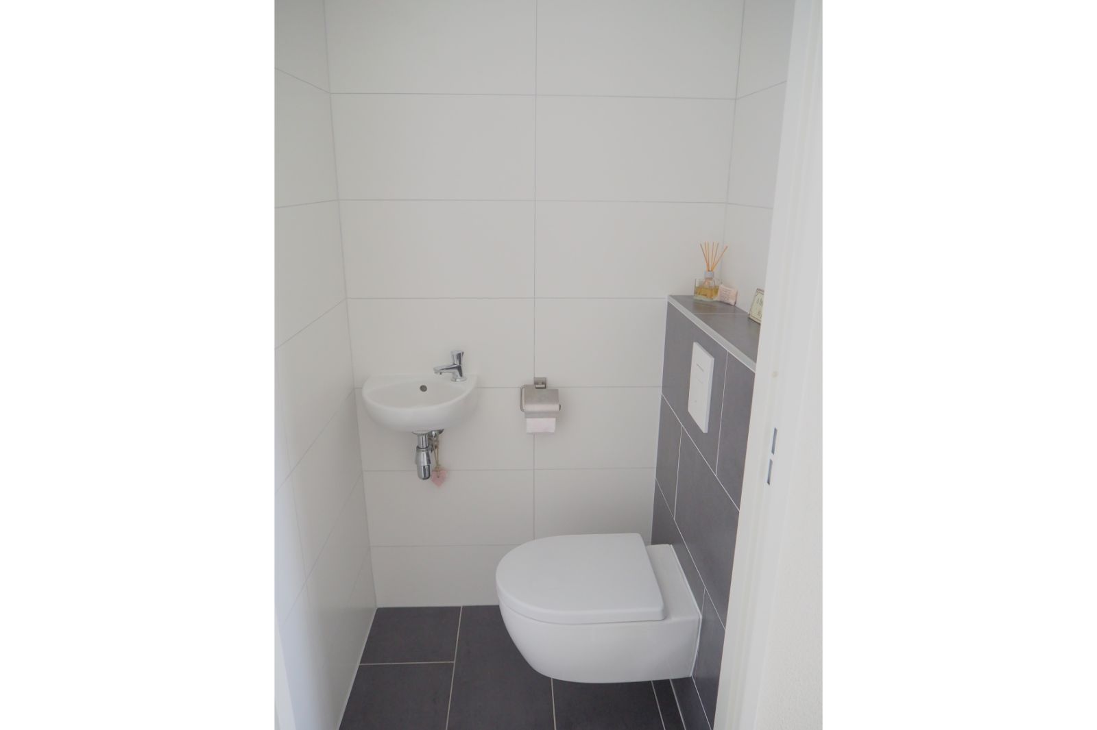 Begane grond: Entree in hal met meterkast, toiletruimte en trapopgang naar de 1e verdieping. De toiletruimte is geheel betegeld en voorzien van een wandcloset en fonteintje.