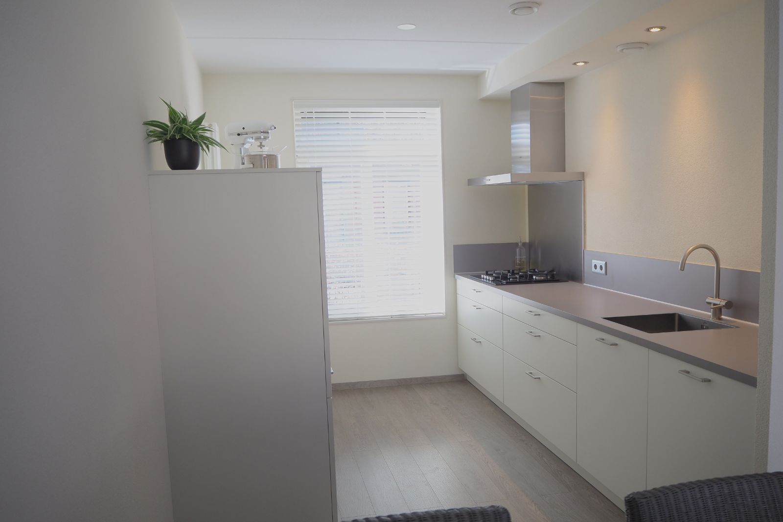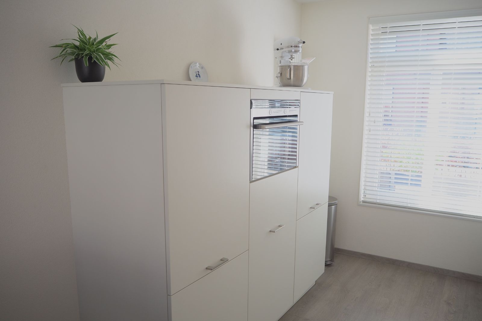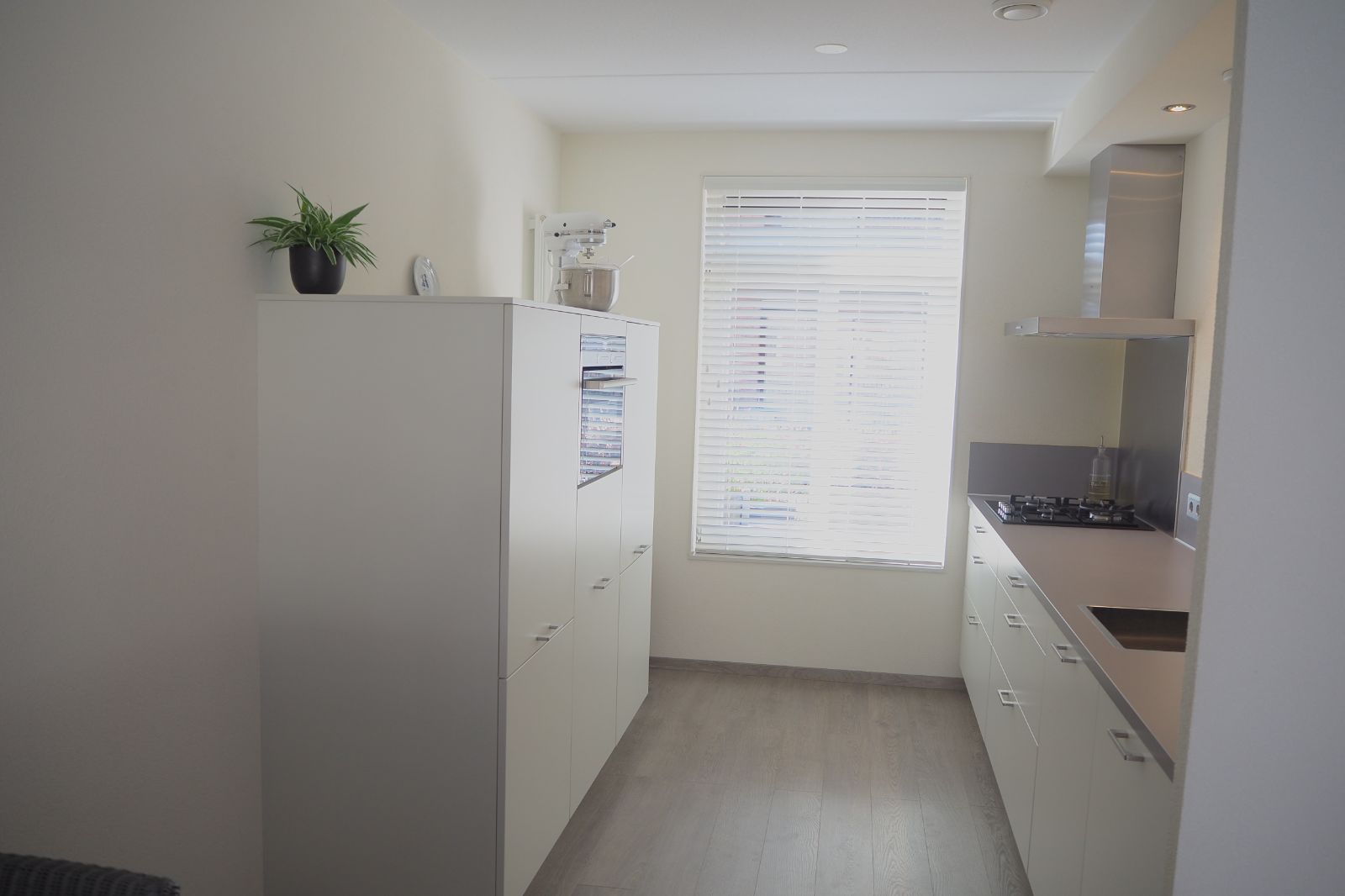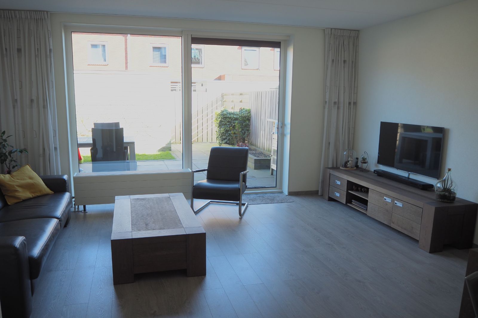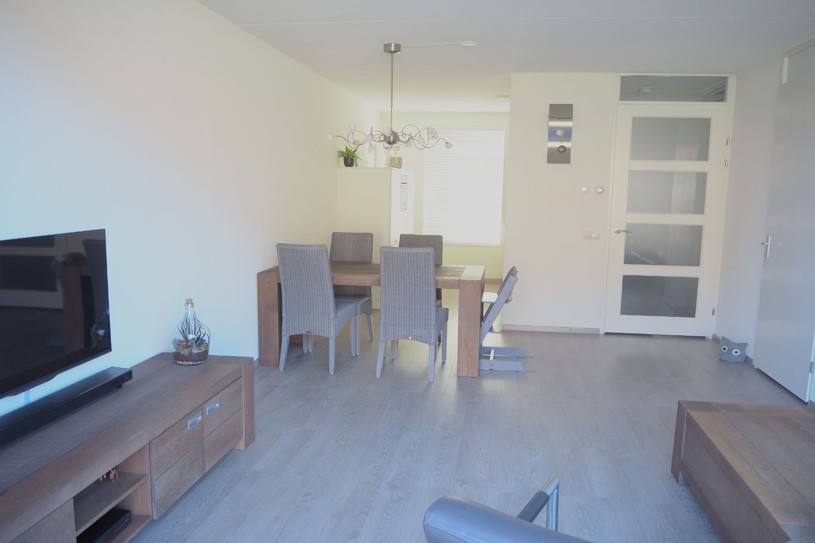Ruime living van ca34 m², bestaande uit de woonkamer en een open keuken. De open Hacker Systemat keuken is voorzien van Siemens gasfornuis, ruime koeler, separate vriezer, combioven, afzuigkap en vaatwasser. De tuingerichte woonkamer is voorzien van een trapkast onder de trapopgang en een schuifpui naar de achtertuin. De brede schuifpui zorgt voor een mooie lichtinval. De woonkamer heeft aan de achterzijde een elektrisch zonnescherm met zonne- en windsensor. De gehele begane grondvloer is afgewerkt met een laminaatvloer.
