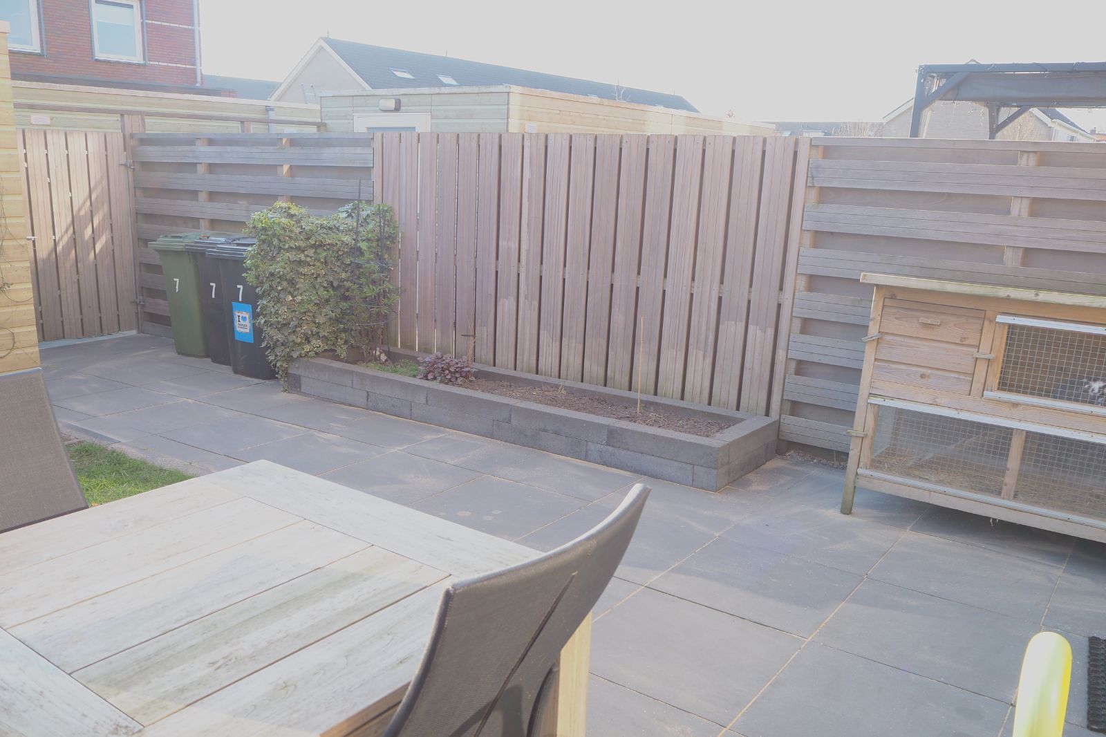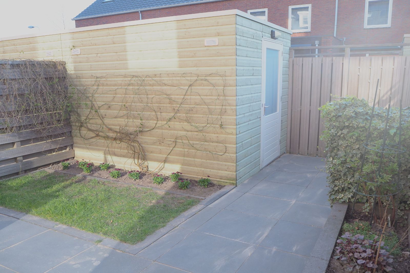 De op het oosten gesitueerde achtertuin heeft een lengte van 8 meter en is voorzien van een houten berging (2.94 x 2.42 m). De tuin is netjes aangelegd en voorzien van hardhouten schuttingen.