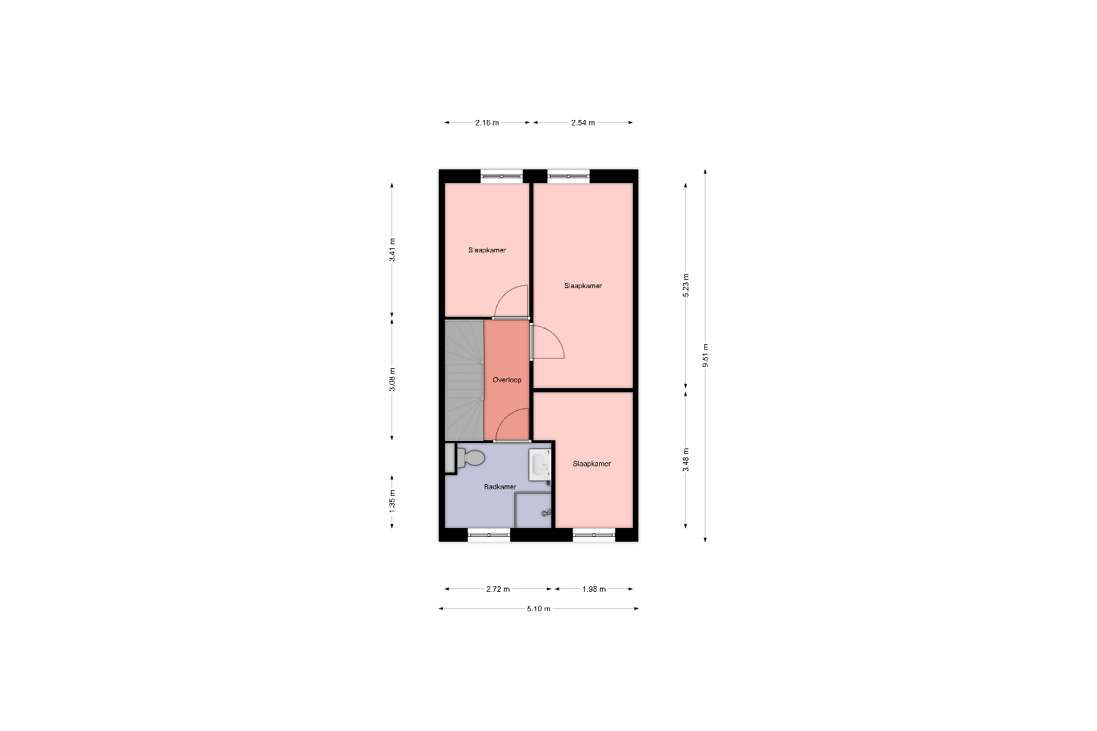 - Slaapkamer aan de achterzijde van 5.23 x 2.50 m